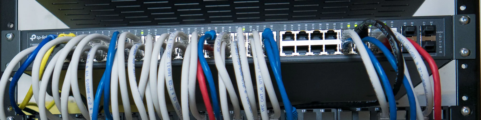 We looked at several 48-port Gigabit switches from different manufacturers and decided to go with the JetStream 48-Port Gigabit Smart Switch with 4 SFP Slots from tp-link. We chose this model due to its low power consumption with a fan-less design which is important as the network cupboard is between two bedrooms and the management features allow us to mirror ports to capture data from any connected devices which is very useful when debugging network-related code.