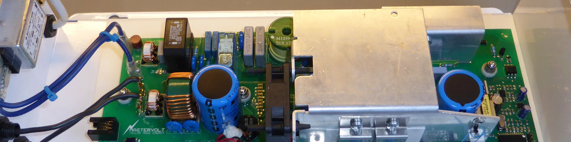 The Mastervolt Solardin inverter was housed in a plastic case and didn’t have any form of internal screening against RF interference being radiated from the unit so we thought that the best option would be to remove the circuit from the plastic case and install it in a metal box which could then be connected to the mains earth to limit any RF transmissions. We purchased a zinc-coated steel case from RS Components (uk.rs-online.com/web/p/instrument-cases/0232024/) which has air vent holes to allow air circulation to cool the inverter.